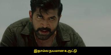 Naanum Rowdydhaan meme template with 'Pondy' Pandi (Vijay Sethupathi) with Junior Rowdy (Balaji Patturaj) with Killivalavan (R. Parthiban) with Rahul Thatha (Rahul Thatha)